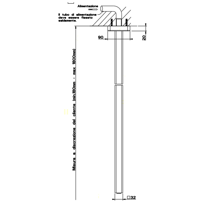 Gessi iSpa Потолочный излив с инд.длиной (180-1800мм), для монтажа с удаленным управлением 46112+41110 (не входит в комплект), цвет: хром