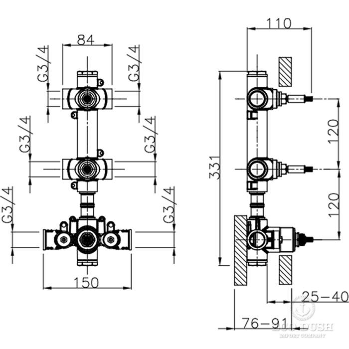 CISAL Встраиваемая часть термостатического смесителя 3/4" с двумя запорными вентилями
