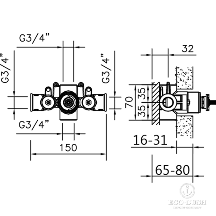 CISAL Встраиваемая часть термостатического смесителя 3/4" без запорного вентиля