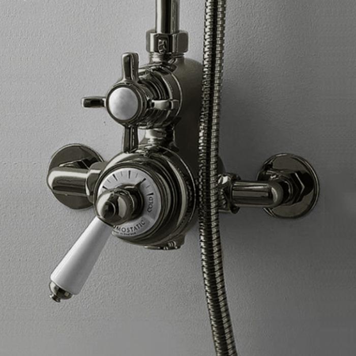 —Devon&Devon Термостат наружного монтажа, для душевой для стойки, с белой ручкой, цвет: никель