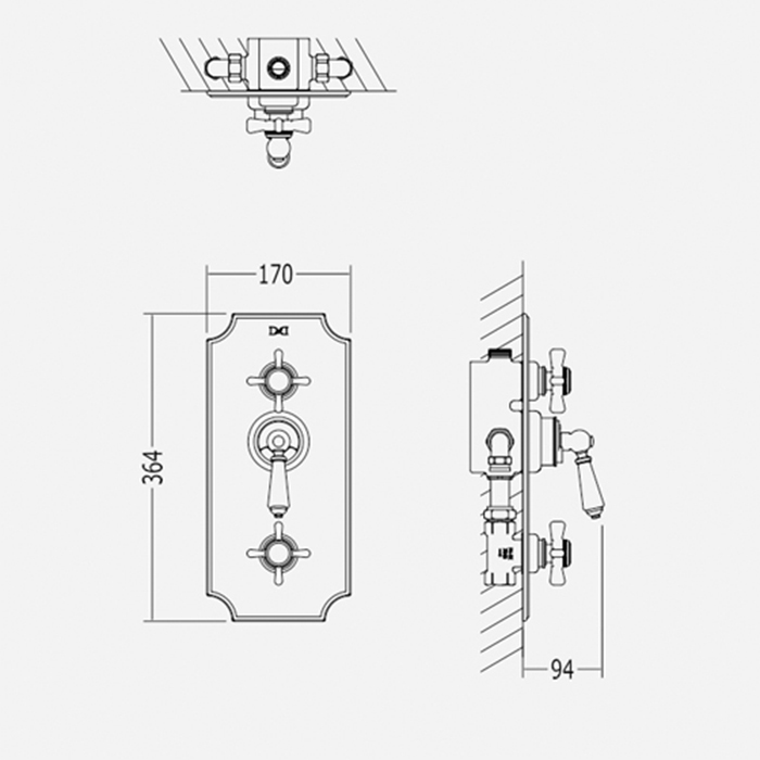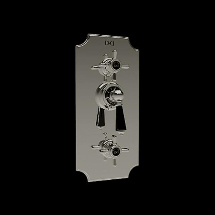 —Devon&Devon Black Dandy Смеситель-термостат встроенный в стену, с переключателем на 2 выхода, c ручкой черной, цвет: никель блестящий