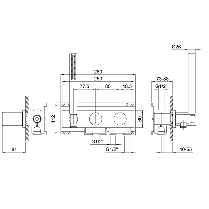 —Fantini Внутренняя часть смесителя для душа, переключатель на 2 источника, 1/2"