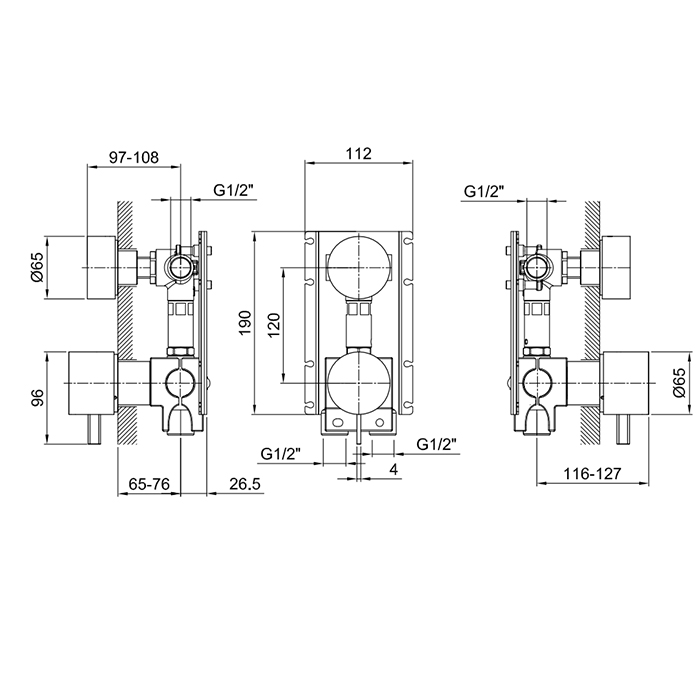 —Fantini Внутренняя часть смесителя для душа, переключатель на 2 источника, с Eco System, 1/2