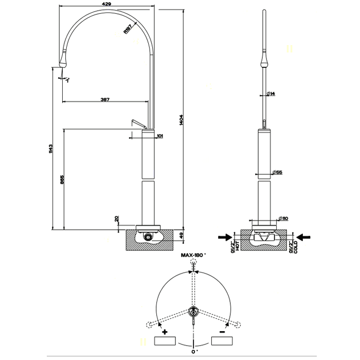 —Gessi Встраиваемая часть напольного смесителя/отдельностоящего излива для раковины