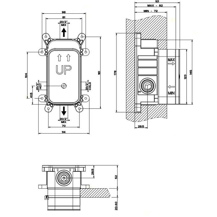 Gessi Внутренняя часть встраиваемого однорычажного смесителя с переключателем