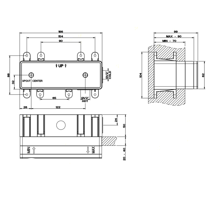 —Gessi Внутренняя часть встраиваемого однорычажного смесителя с изливом