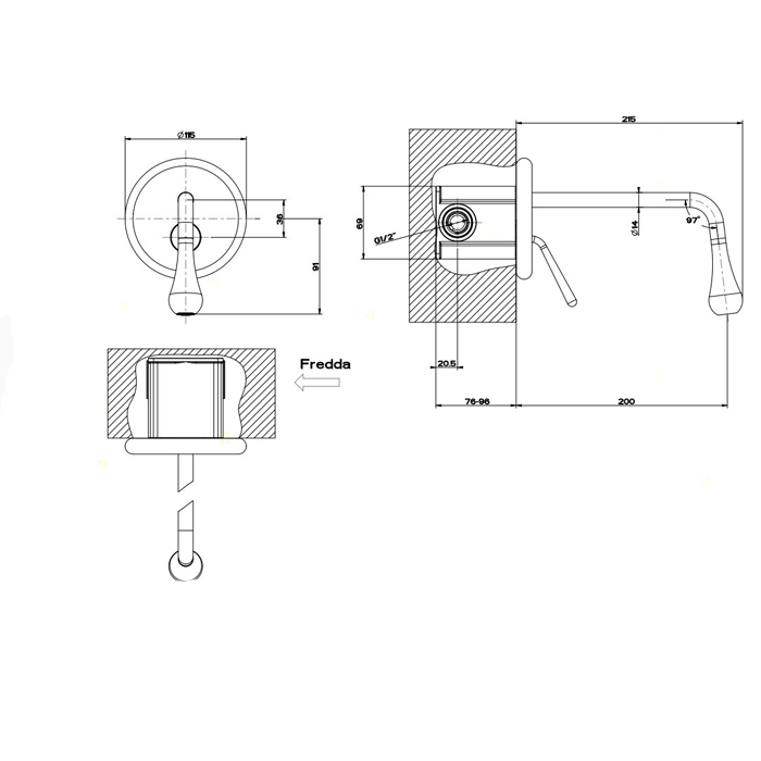 —Gessi Внутренняя часть встраиваемого однорычажного смесителя для раковины с изливом