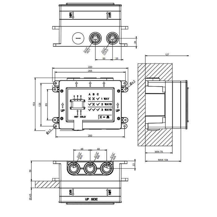 —Gessi Hi-Fi Встраиваемые части для термостатического смесителя с кнопками, 1/2" соединение., цвет: хром