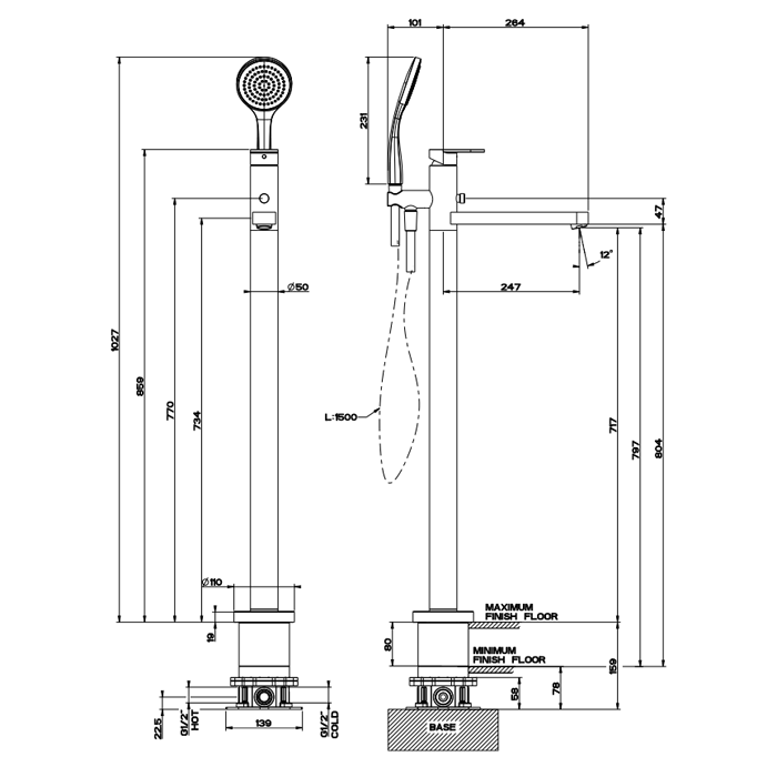 Gessi Встраиваемая часть напольного смесителя для ванны с ручным душем