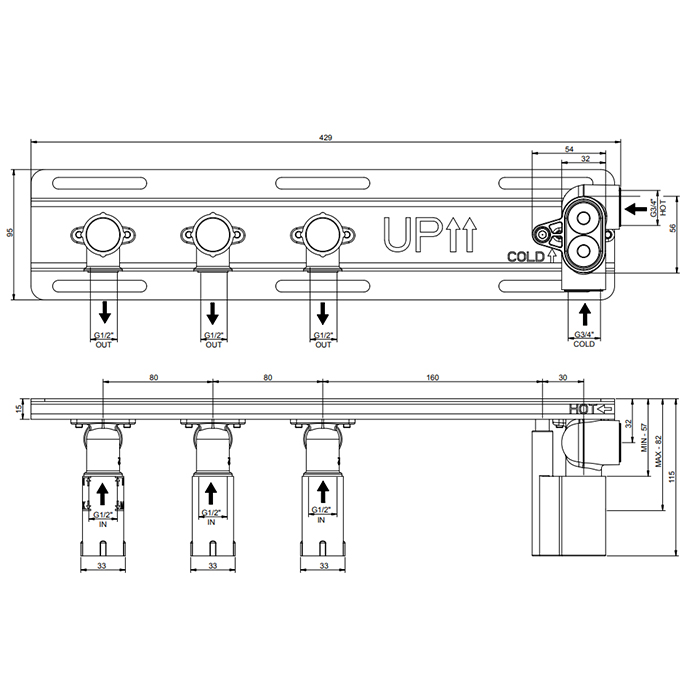 • Кронштейны для верхнего душа
