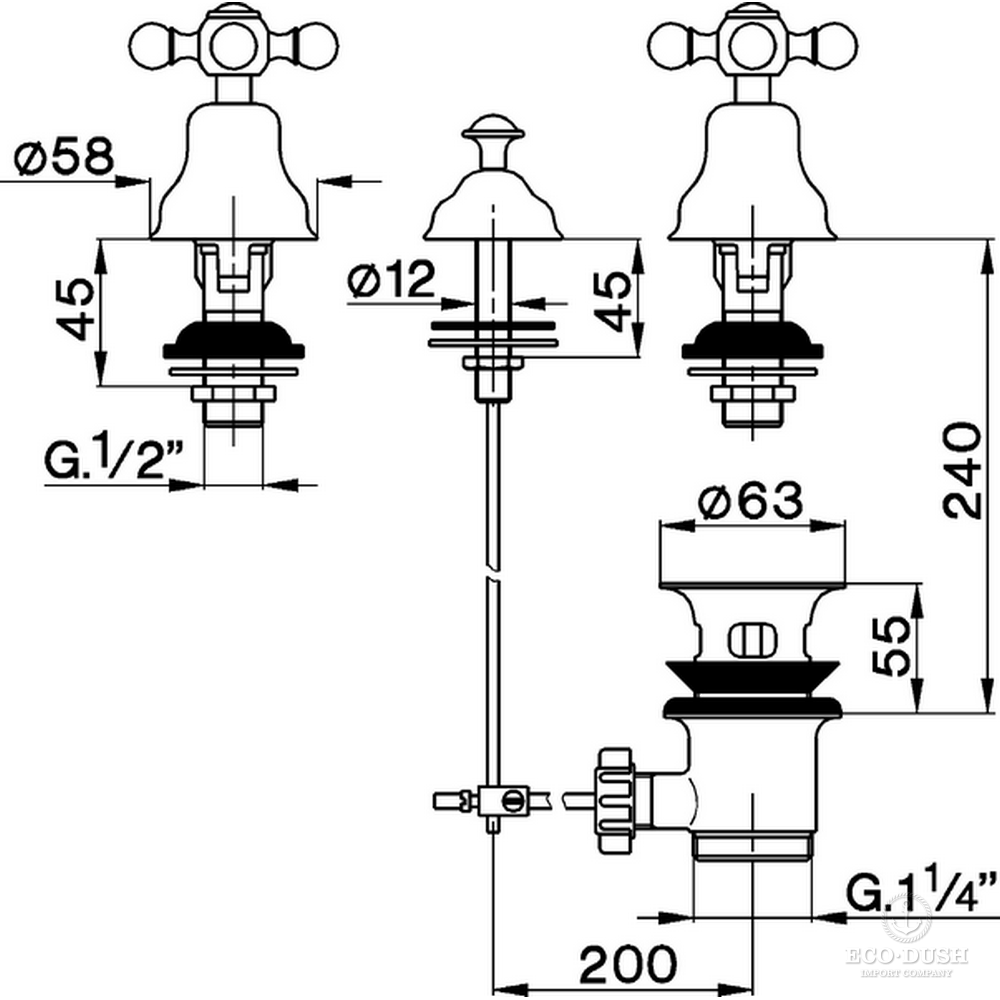CISAL Arcana Ceramic Смеситель для биде на 3 отверстия без излива, с донным клапаном, цвет хром