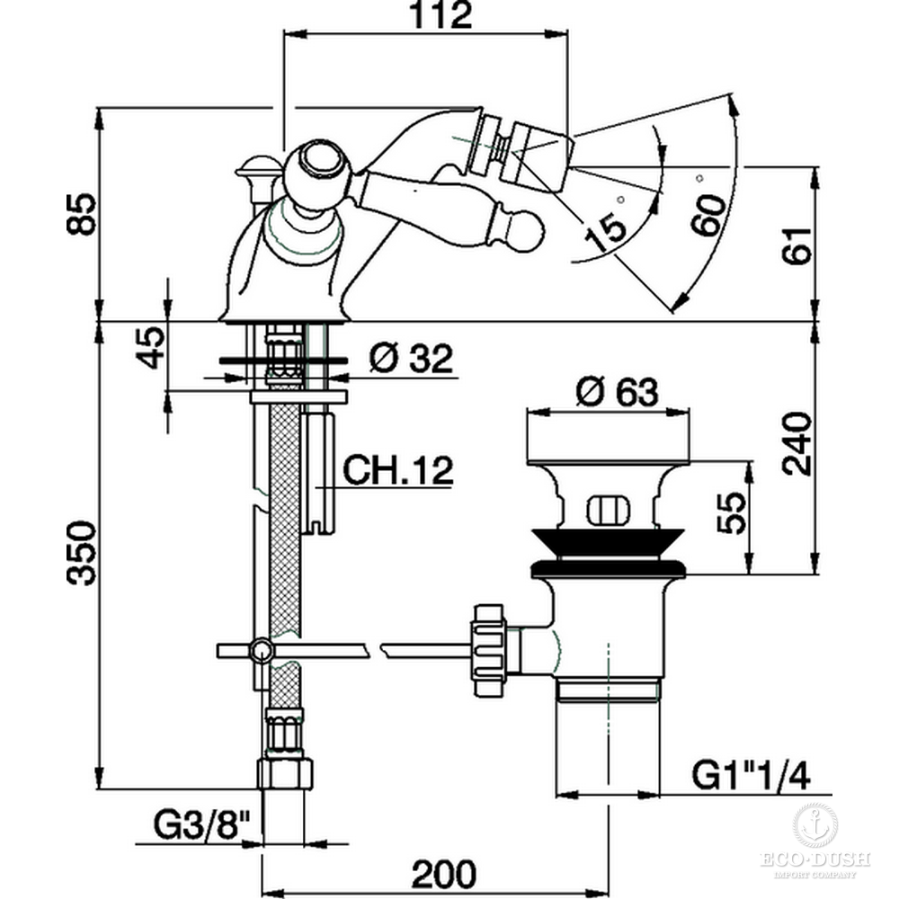 CISAL Arcana Toscana Смеситель двухвентильный для биде на 1 отверстие с донным клапаном, цвет хром