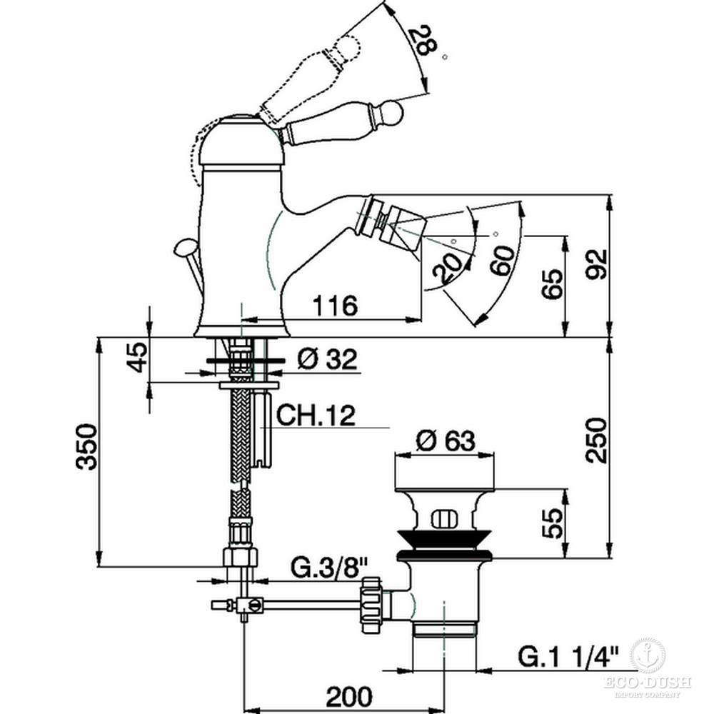 CISAL Arcana Empress Смеситель однорычажный для биде на 1 отверстие с донным клапаном, цвет хром