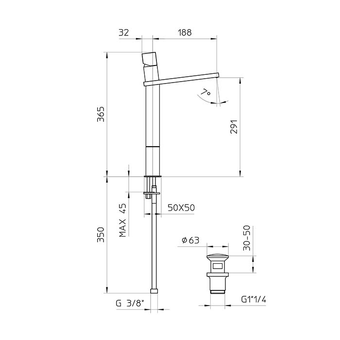 Bossini Cube Смеситель для раковины на 1 отв., суперцвет:высокий с заглушкой 1”1/4, цвет: хром
