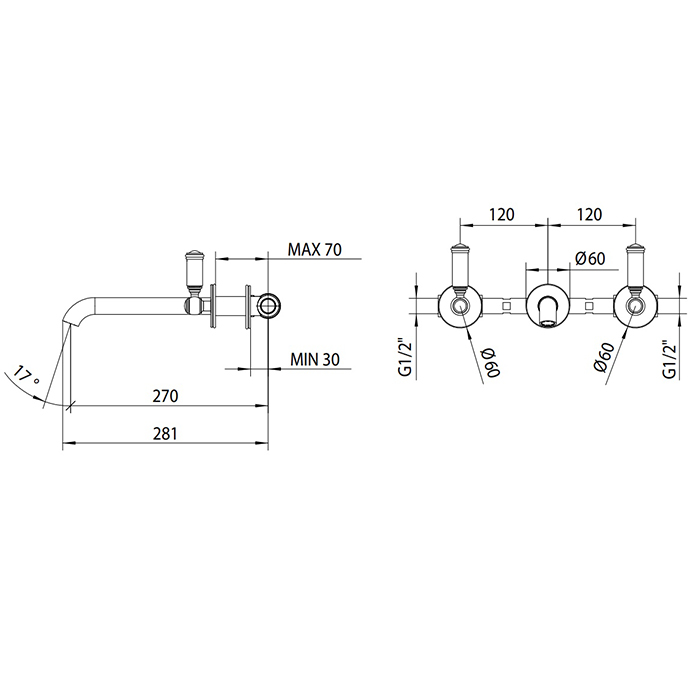 Bossini Liberty Смеситель для раковины на 3 отверстия встраиваемый без заглушки, цвет: античная бронза