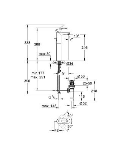 Высота излива, см