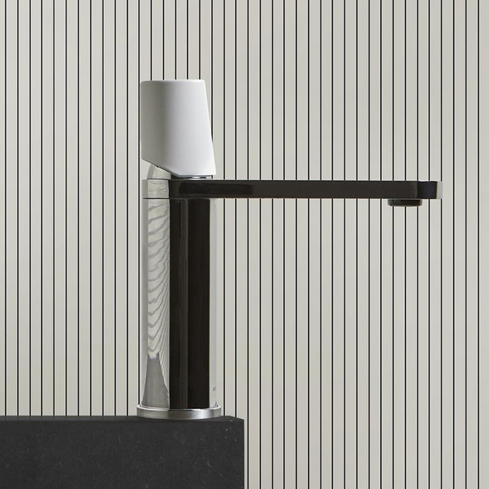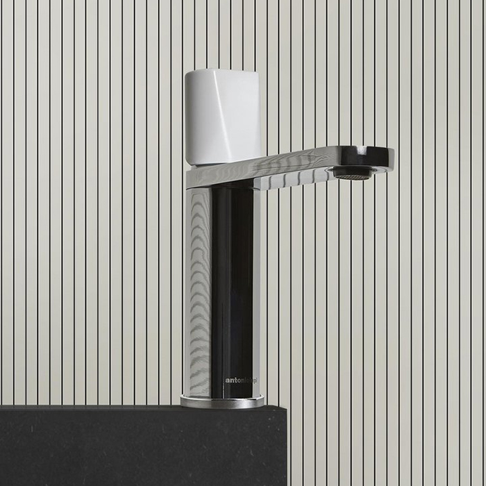 —ANTONIO LUPI INDIGO Смеситель для раковины на 1 отверстие, излив 165 мм., ручка белая, цвет: хром глянцевый