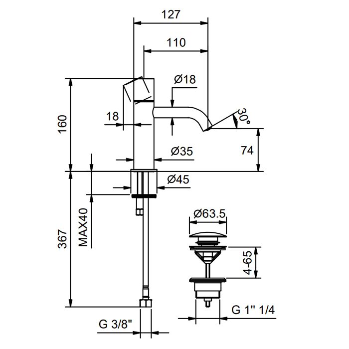 —Fantini Nostromo SMALL Смеситель для раковины на 1 отв., цвет: черный матовый