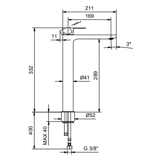 —Fantini Myo Смеситель для раковины на 1 отверстие, высокий излив , цвет: черный матовый