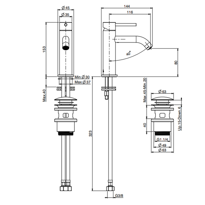 —Carlo Frattini Spillo Steel Смеситель для раковины, на 1 отверстие, с донным клапаном click-clack, цвет: INOX
