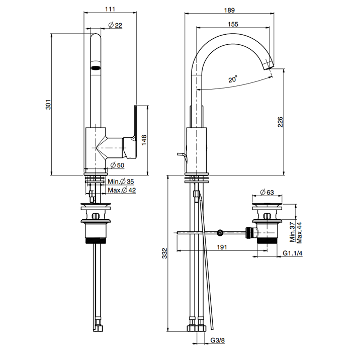 FIMA|Carlo Frattini Mast Смеситель для раковины, вращающийся излив, с донным клапаном, цвет хром