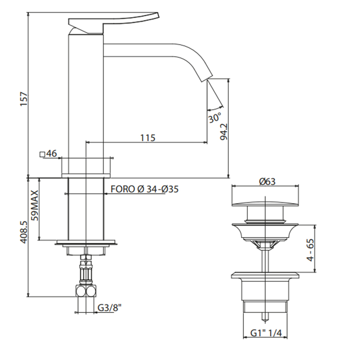 —Gattoni ELY Смеситель для раковины H157мм, излив 115 мм, цвет: хром