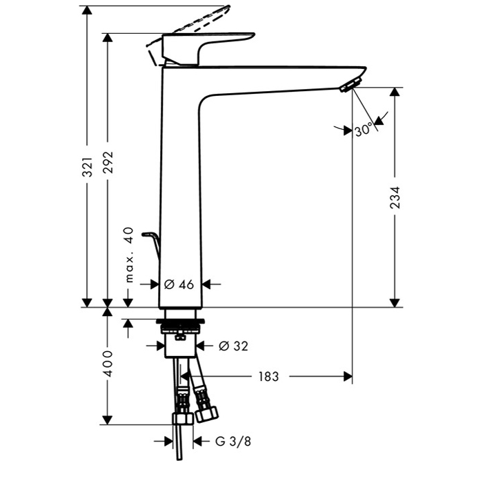HG Talis E Смеситель для раковины 240, на 1 отв, с донным клапаном, излив 183мм, h234мм, цвет: хром