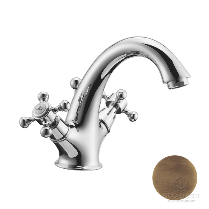 HUBER Victorian Смеситель двухвентильный для раковины на 1 отверстие с донным клапаном, цвет: бронза