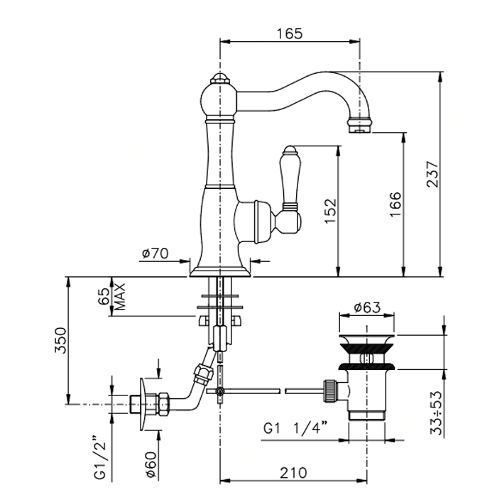 —Nicolazzi El Capitan Смеситель для раковины однорычажный, с донным клапаном, цвет: хром