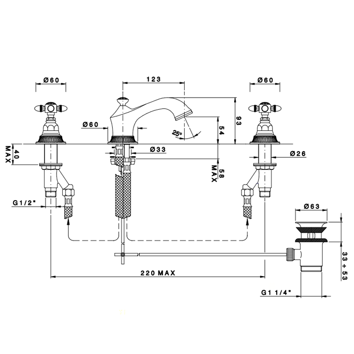 —Nicolazzi Impero Смеситель для раковины на 3 отверстия, с донным клапаном, цвет: хром
