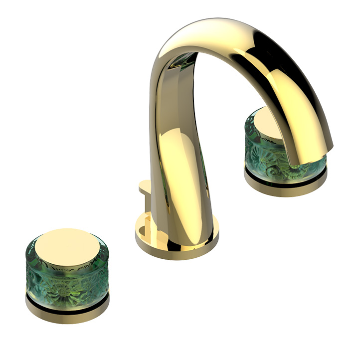 THG ISLAND Смеситель для раковины на 3 отверстия, ручки с подсветкой, с донным клапаном, цвет Soft gold