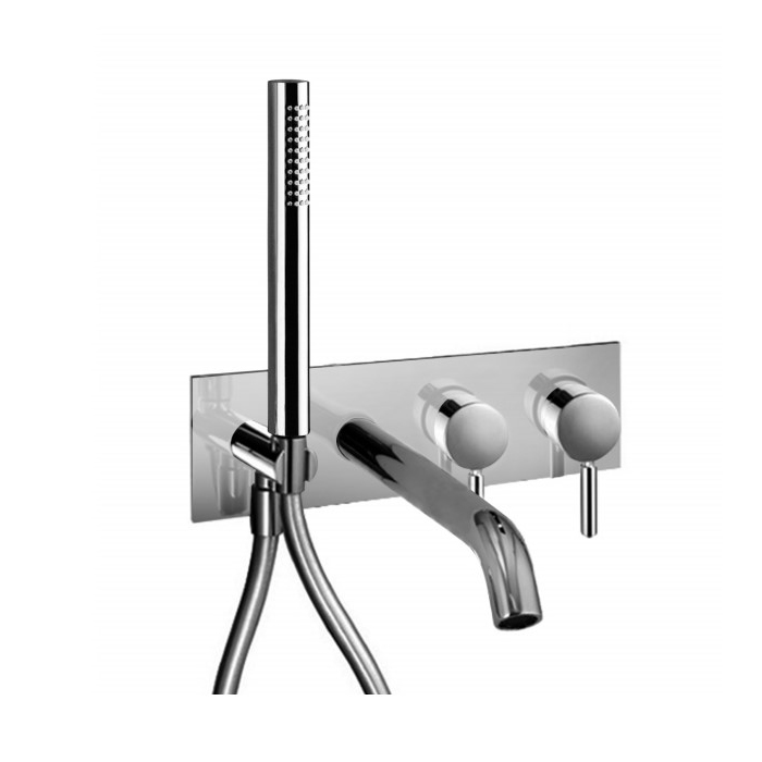 Fantini Nostromo Смеситель для ванны, встраиваемый, с ручн душем, излив 200мм, (наружняя часть), цвет: нержавеющая сталь