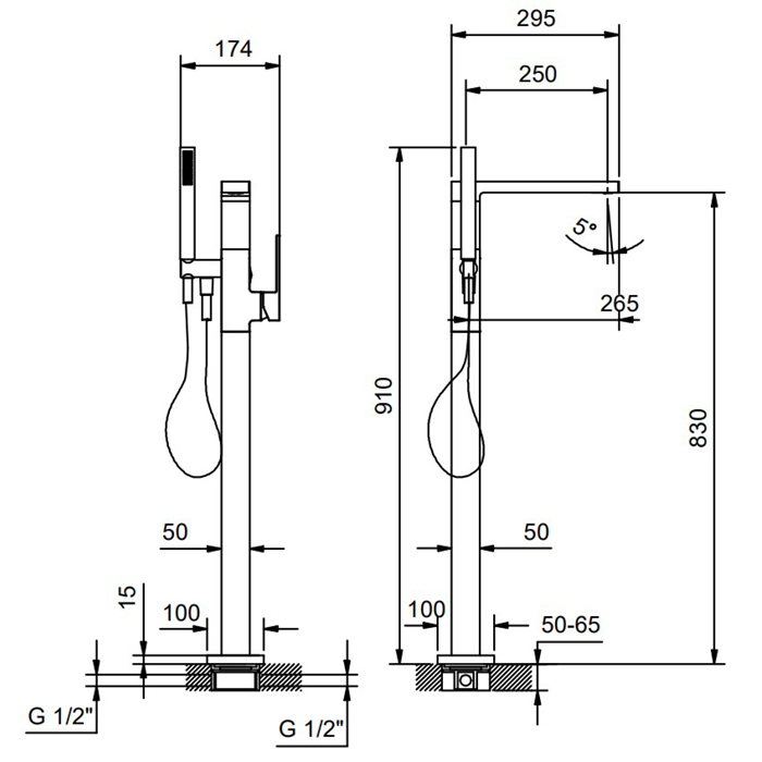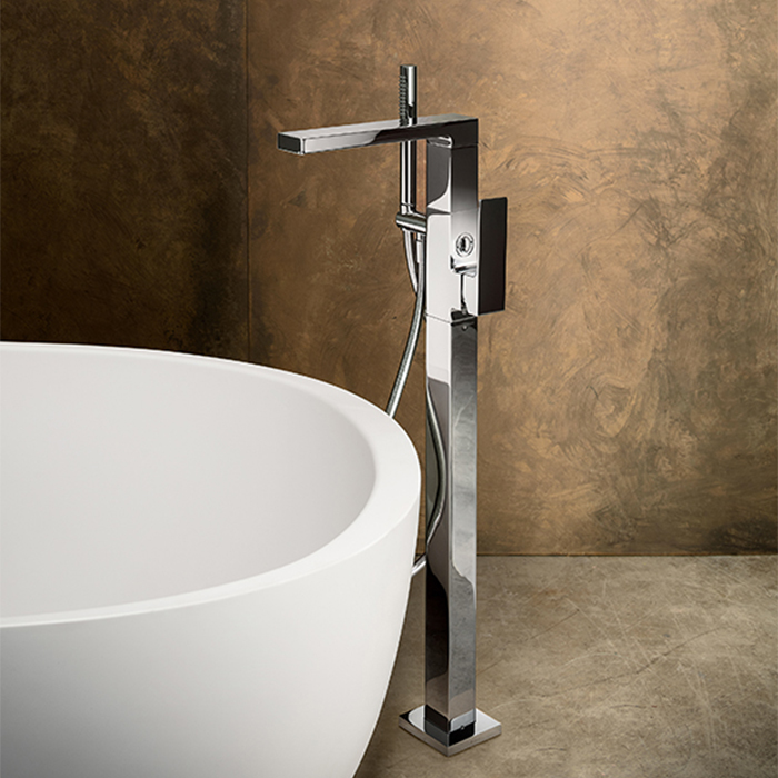 Fantini Mint Смеситель для ванны, напольный, с ручн душем, излив 250мм, с ручн.душем, (наружняя часть), цвет: хром