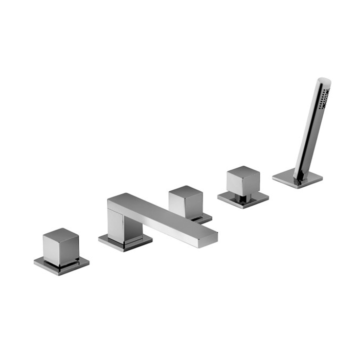 Fantini Mint Смеситель на борт ванны, 5 отв., с ручн душем, излив 175мм, цвет: нержавеющая сталь