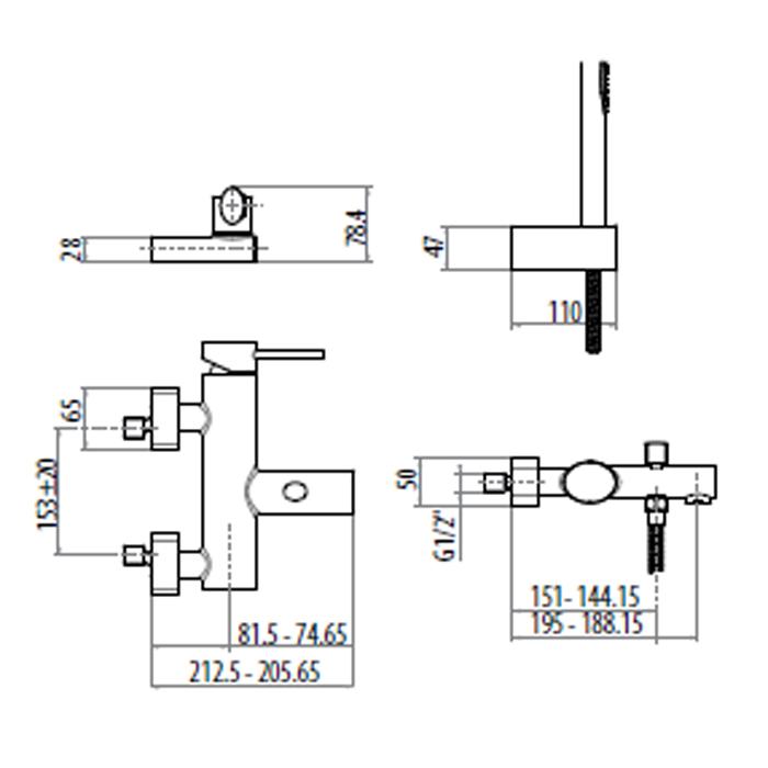 GATTONI LOGOS Смеситель  для  ванны с ручной лейкой , излив 195мм ,цвет хром