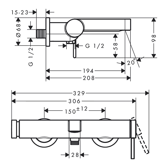 —Hansgrohe Finoris Смеситель для ванны, настенный, цвет: белый матовый