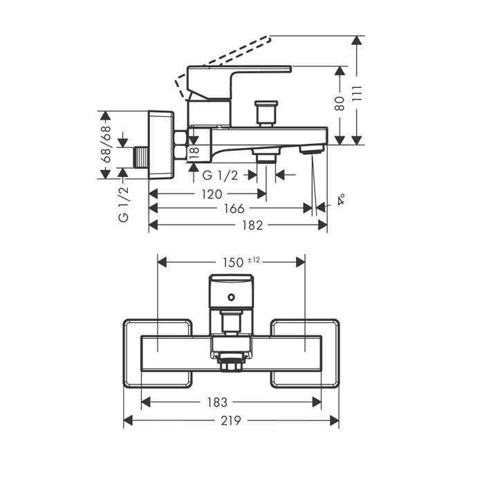 —Hansgrohe Vernis Shap Смеситель для ванны, однорычажный, цвет: хром