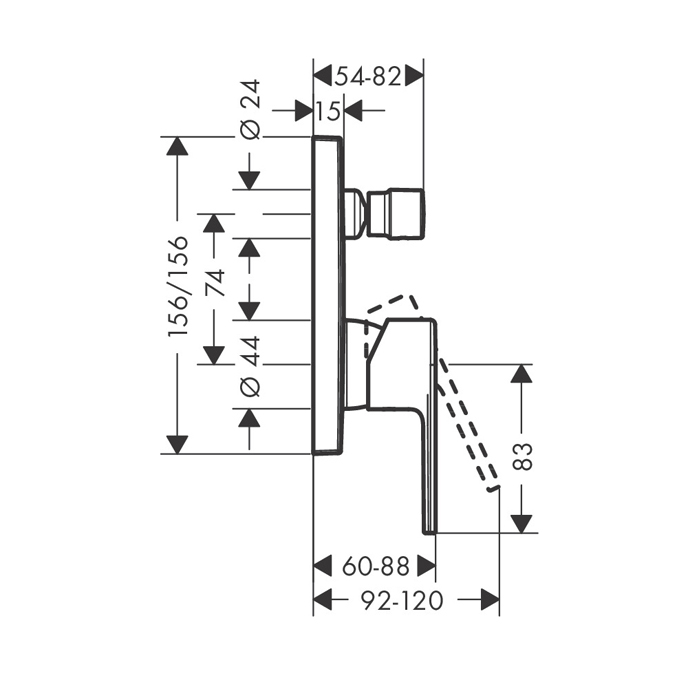 HG Vernis Shape Встраиваемый смеситель для ванны с переключателем (внешняя часть), цвет: матовый черный