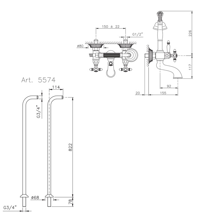 —Nicolazzi Impero Смеситель для ванны с 2мя ручками, с переключателем ванна/душ, цвет: золото