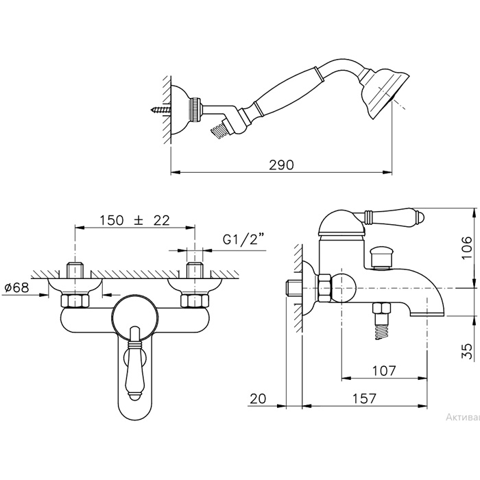 • Смесители для ванны с душем