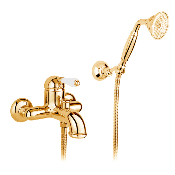 —Nicolazzi P.m. Blanc Смеситель для ванны однорычажный, настенный, с ручным душем, ручки белая керамика, цвет: золото