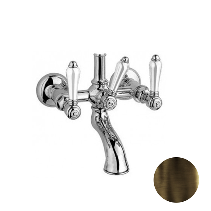 —Nicolazzi P.M.Blanc Смеситель для ванны на 2 отверстия, с переключателем ванна/душ, вывод сверху 3/4" (для душ. стойки), ручки белая керамика, цвет: тёмная бронза