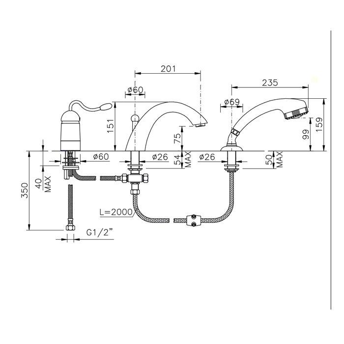 • Смесители для ванны с душем