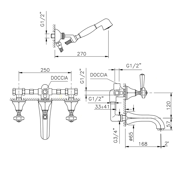 Nicolazzi Teide Смеситель для ванны с 2мя ручками, встроенный, с ручным душем, вкл. внутр часть, излив: 168 мм, цвет: хром