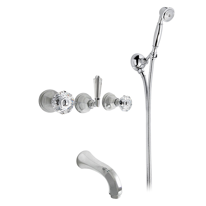 Nicolazzi Teide Встраиваемый смеситель для ванны с изливом от стены, излив: 168 мм, ручки Crystal handle, цвет: хром