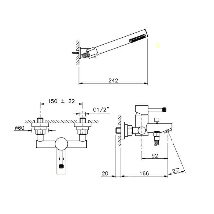 —Nicolazzi Leva Arena Смеситель для ванны на 2 отверстия, с душевой лейкой, цвет: хром