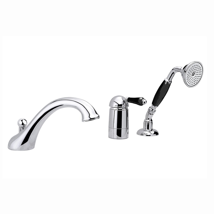 —Nicolazzi Ceramica Nera Смеситель на борт ванны на 3 отверстия, с изливом 200мм и ручным душем, ручки черная керамика, цвет: хром