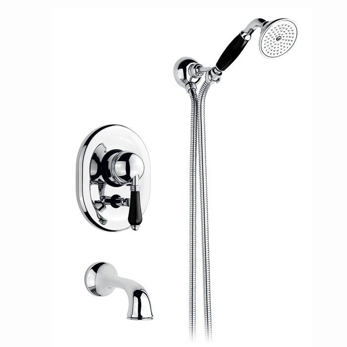 —Nicolazzi Ceramica Nera Смеситель для ванны однорычажный, встраиваемый, с изливом 160мм и ручным душем, ручки черная керамика, цвет: хром