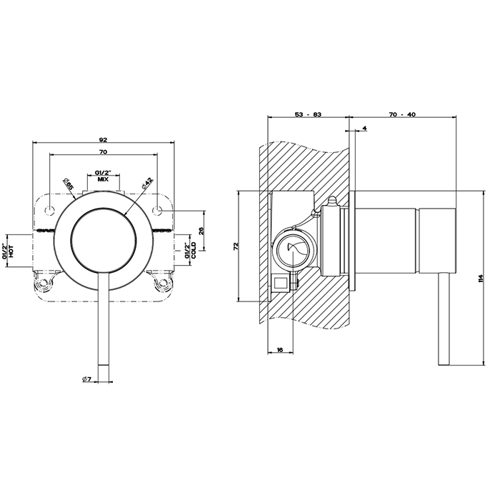 —Gessi 316 Встраиваемый смеситель, на 1/2", на 1 источник, внешняя часть, цвет: brushed black metal pvd