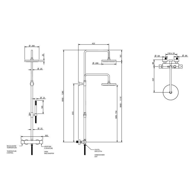 Bongio T Mix Душевая стойка с термостатическим смесителем и ручным душем, цвет черный матовый